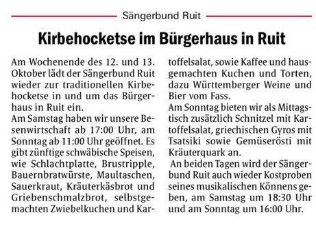 Einladung zur Kirbe in "Bei Uns" Esslinger Zeitung