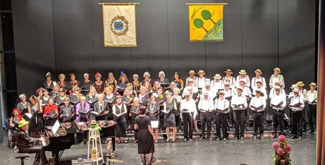 Zusammen mit der Cantina-Band der Musikschule Ostfildern unter der Leitung von Harald Schneider trat der rund 60-köpfige Projektchor vor ein gespanntes Publikum im mehr als vollbesetzten Theater an diesem sonnigen Sonntagnachmittag, das von der ersten Vorsitzenden Martina Gerbig herzlich begrüßt wurde.